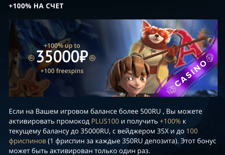 🎁 100% ДО 35 000 руб и 100 фриспинов
